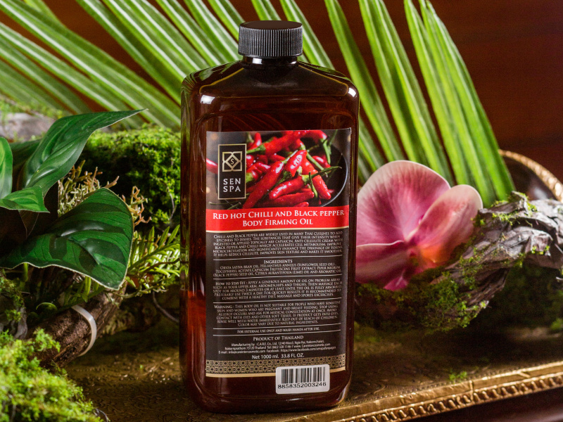 - Антицеллюлитный массаж (15 минут) Проведение антицеллюлитного массажного масла SENSPA с экстрактом перца чили активирует выведение избыточной жидкости, корректируя "апельсиновую корку" уже после первой процедуры.